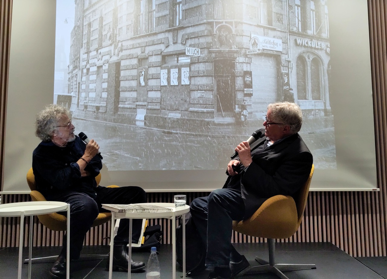 Schließlich ein leidenschaftliche Appell (an die Stadt und andere Geldgeber): Die Menschen, die solche Bilder identifizieren können und sich an die Zeit erinnern, sterben nach und nach aus, es wird höchste Zeit, solche verborgenen Fotoschätze zu erschließen und zugänglich zu machen. Dem schließen wir uns unbedingt an; die FREUNDE werden weiterhin dabei helfen und dafür sorgen, dass solche Geschichten im Historischen Archiv mit Rheinischem Bildarchiv weitererzählt werden können. Der Abend klang aus mit guten und langen Gesprächen im Foyer, einem kleinen Imbiss, jede Menge Selfies mit der Kölschrock-Legende und Menschen, die glücklich einen von beiden Verfassern signierten Fotoschatz nach Hause tragen durften.